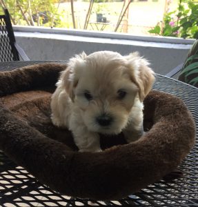 Last but not least is Puppy #8, now Thyme. He is white with a tinge of cream on his ears which will probably fade to white. He clearly has the attitude that he is a Prince! Especially in this photo. Maybe it’s because he scared me silly when he was born and couldn’t breath as the result of swallowing amniotic fluid during delivery. After trying all I know to resuscitate him I rushed him to my vet who did his magic. Thyme now weighs 2.15 pounds. Clearly his bumpy first few hours didn’t affect his ability to eat!