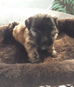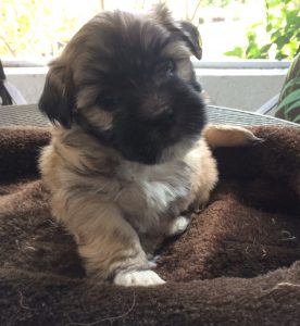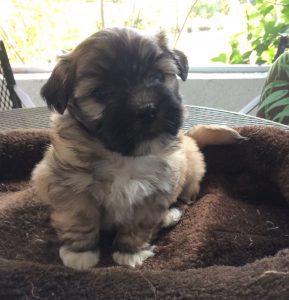 This is Cocoa. He is Puppy #2. He weighs 1.48 pounds and is a very dark sable with white toes on his back feet.