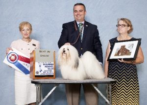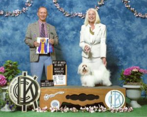 Fern winning her championship at the Detroit Dog Show last June with my first owner-handled Best of Breed win!!